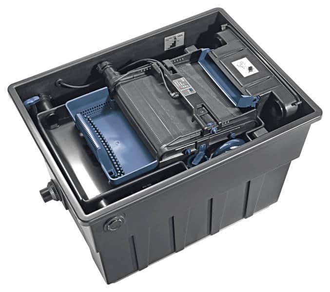 OASE BioTec ScreenMatic SET je kompletan, inteligentan sustav filtracije koji kombinira mehaničku i biološku filtraciju s automatskim čišćenjem. Pokretni ScreenMatic pojas automatski uklanja veće nečistoće prije nego što one dođu do filter spužvi, čime se smanjuje potreba za održavanjem i produžuje vijek trajanja sustava.